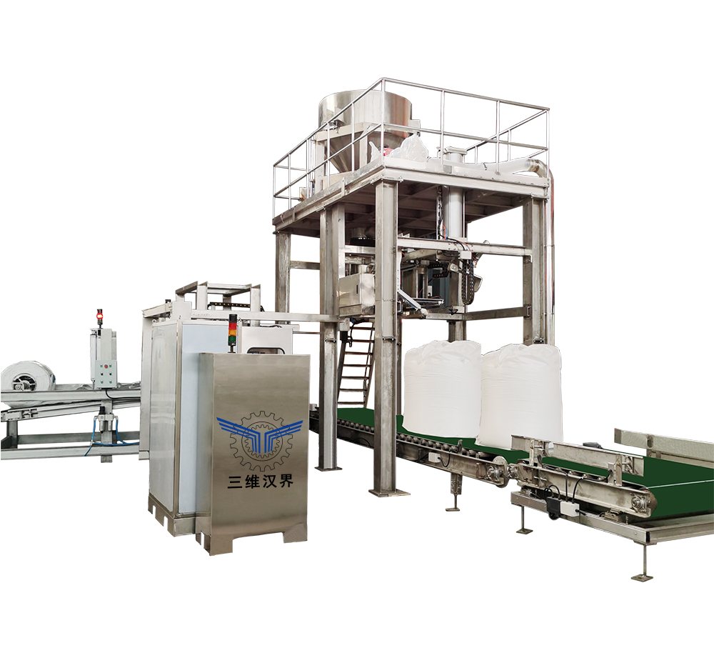 全自動噸袋包裝機,也叫全自動大袋包裝機、全自動噸袋包裝秤、全自動大袋包裝秤,是一種全自動噸袋包裝設備,全自動噸袋包裝機克服了噸袋包裝機(噸袋包裝秤、大袋包裝機、大袋包裝秤)需要人工上袋(掛袋)的缺點,實現了噸袋的自動上袋、物料自動稱量、自動灌袋、自動輸送、自動熱合封口、自動噴碼打印相關生產信息;全自動噸袋包裝機可以應用在需要大袋包裝的任何生產線,可以完美替代半自動人工上袋噸袋包裝機,顆粒物料和粉體物料皆可以使用全自動噸袋包裝機實現物料的自動包裝盒輸送。隨著人工費用的增加,全自動噸袋包裝機的使用推廣范圍越來越大。