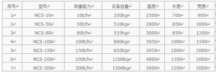 中間計量秤SW-NCS技術參數(shù):