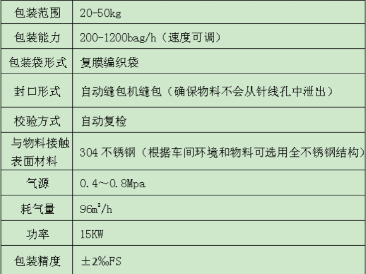有機肥全自動包裝秤能滿足粉體物料或顆粒物料(稱重范圍10-50kg)產品的稱重、供袋、取袋、夾口、裝袋、折邊、縫袋、倒袋整形、重量檢測、超限剔除、自動壓平、調姿、編組、分層升降等作業,并全部實現自動化。可包裝:有機肥、復合(混)肥、摻混肥、樹脂包衣尿素、硫包衣尿素;稱量范圍:25、50㎏/bag;包裝速度:400-600bag/h(可根據物料特點及客戶要求);稱量精度:±2‰;正常進口溫度:常溫;安裝位置:室內;工作環境溫度:-20~+45℃;包裝袋:包裝袋結構形式:塑料編織袋,單向開口,內覆塑料膜包裝袋規格:50kg:800(長)*560(寬)*150(高),40kg:800(長)*500(寬)*130(高);包裝袋制造標準:符合GB/T15063---2001,重量120克及以上。